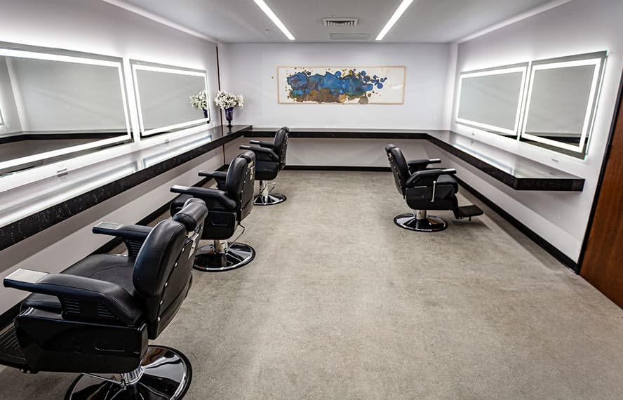 Glendale is designed with efficiency and holistic production purposes in mind. Each stage is directly supported by hair and makeup rooms and private baths, providing a hub for actors close to set. Each room provides ample space for stylists to work and is customizable to each new production.